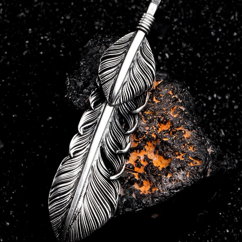 ネイティブ系王道フェザーペンダントトップ(Mサイズ左向き)