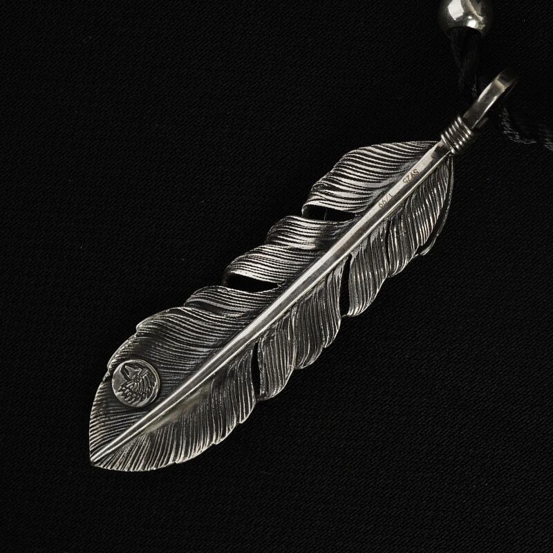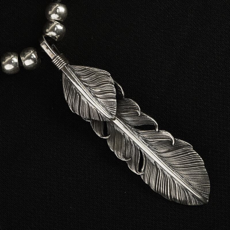 XLサイズ銀線まき上銀純シルバーフェザーペンダントトップ(左)