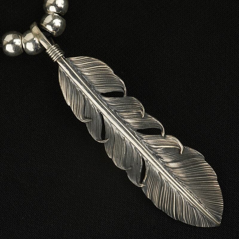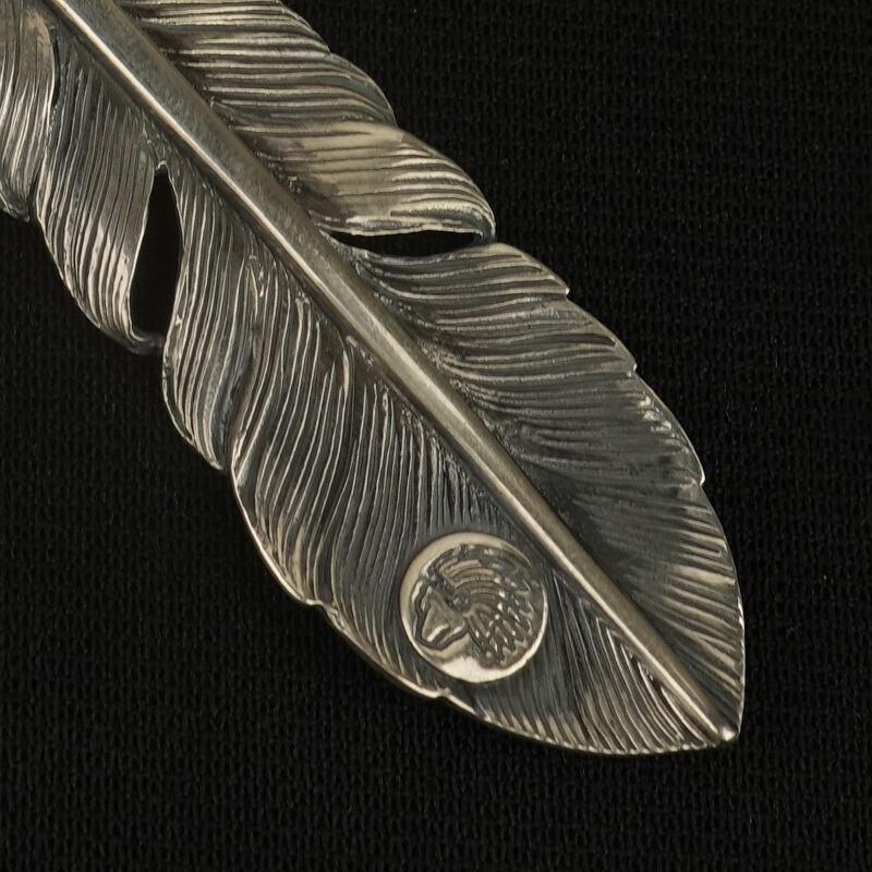 XLサイズ銀線まき純シルバーフェザーペンダントトップ(左向き)