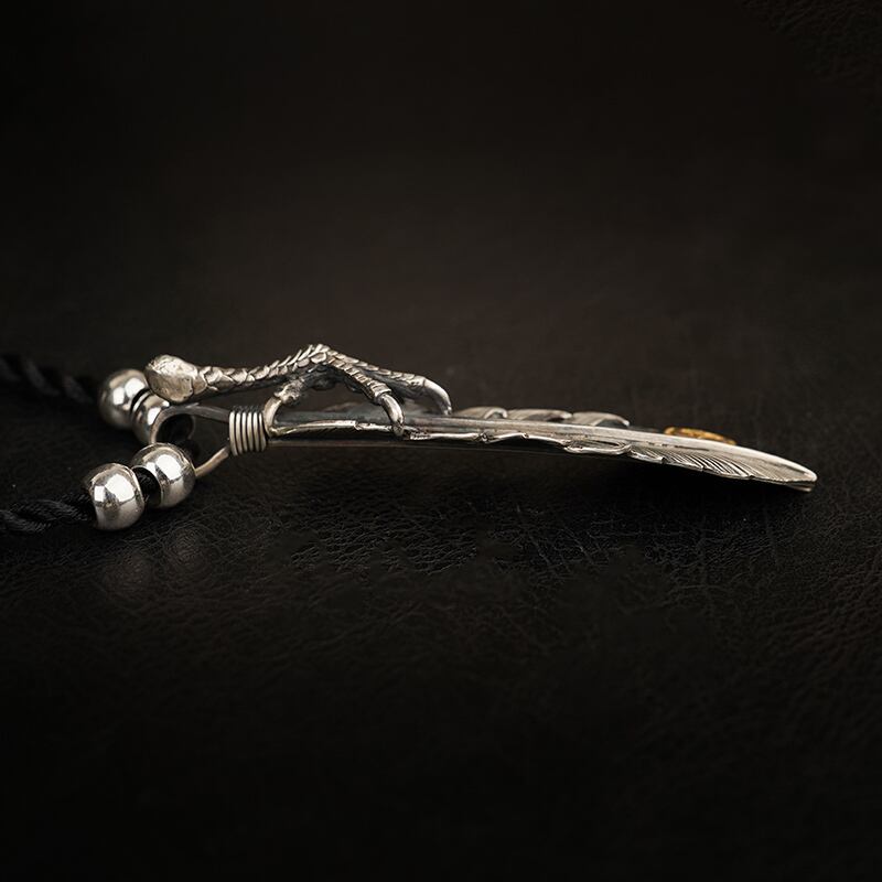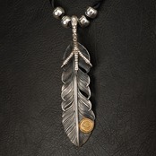 XLサイズ銀線まき18K付きツメフェザーペンダントトップ(左)