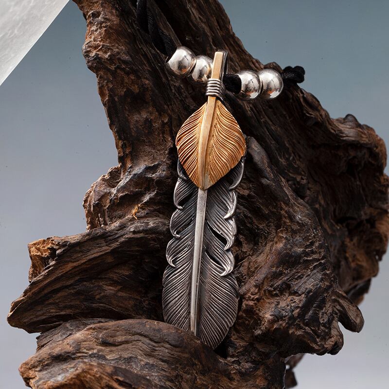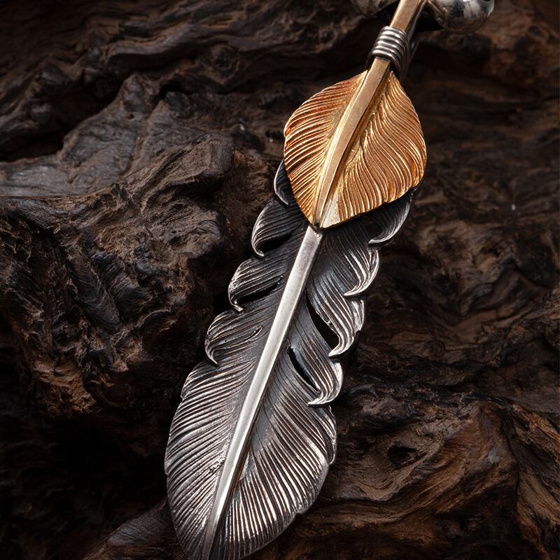 Lサイズ銀線まき上金フェザーペンダントトップ(左向き)