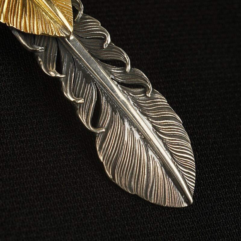 Mサイズ銀線まき上金フェザーペンダントトップ(右向き)