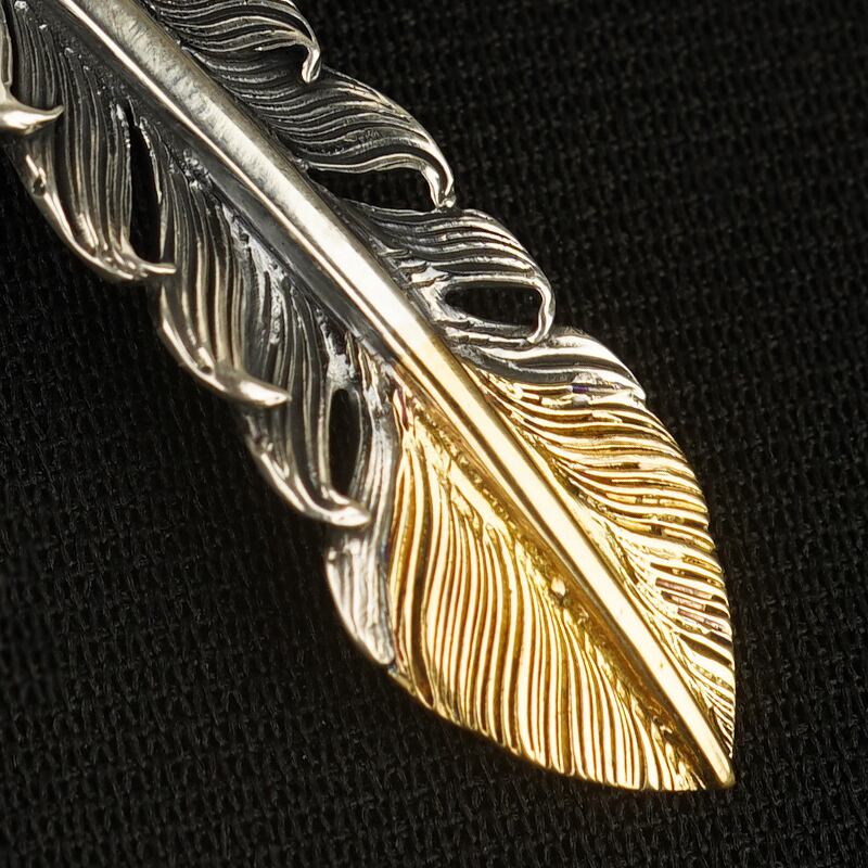 Sサイズ金線まき先金フェザーペンダントトップ(右向き)