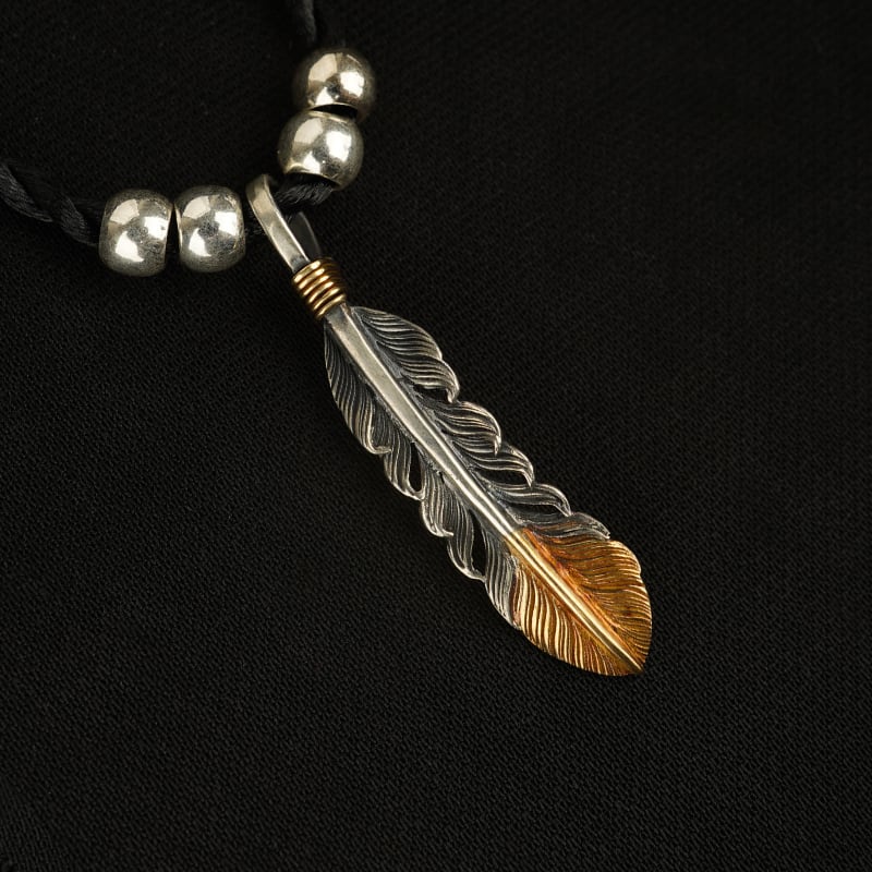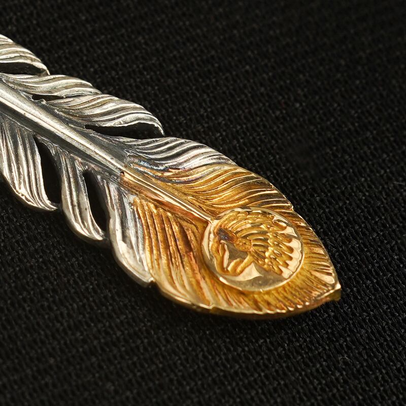 Sサイズ金線まき先金フェザーペンダントトップ(左向き)
