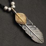 XLサイズ銀線まき上金フェザーペンダントトップ(左向き)